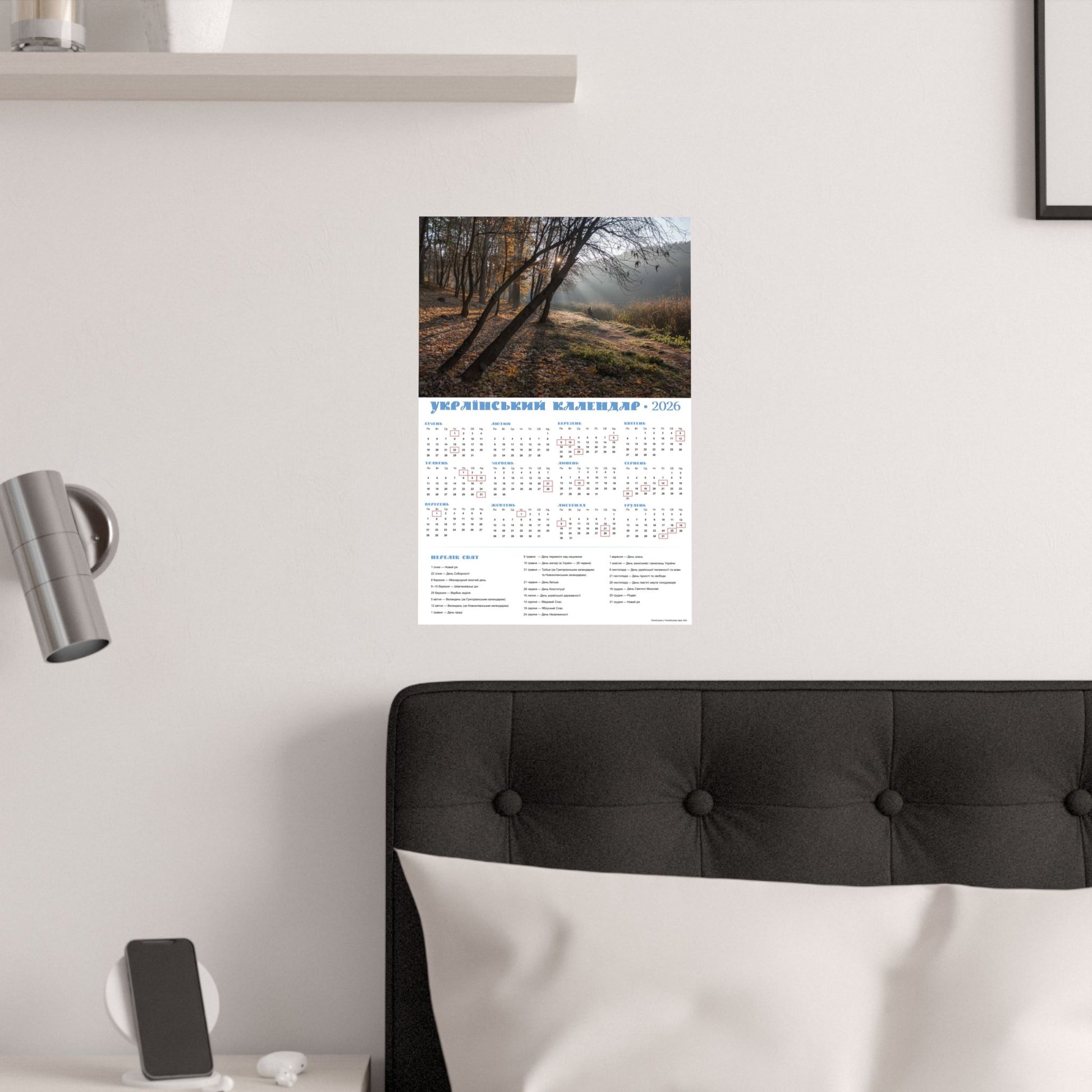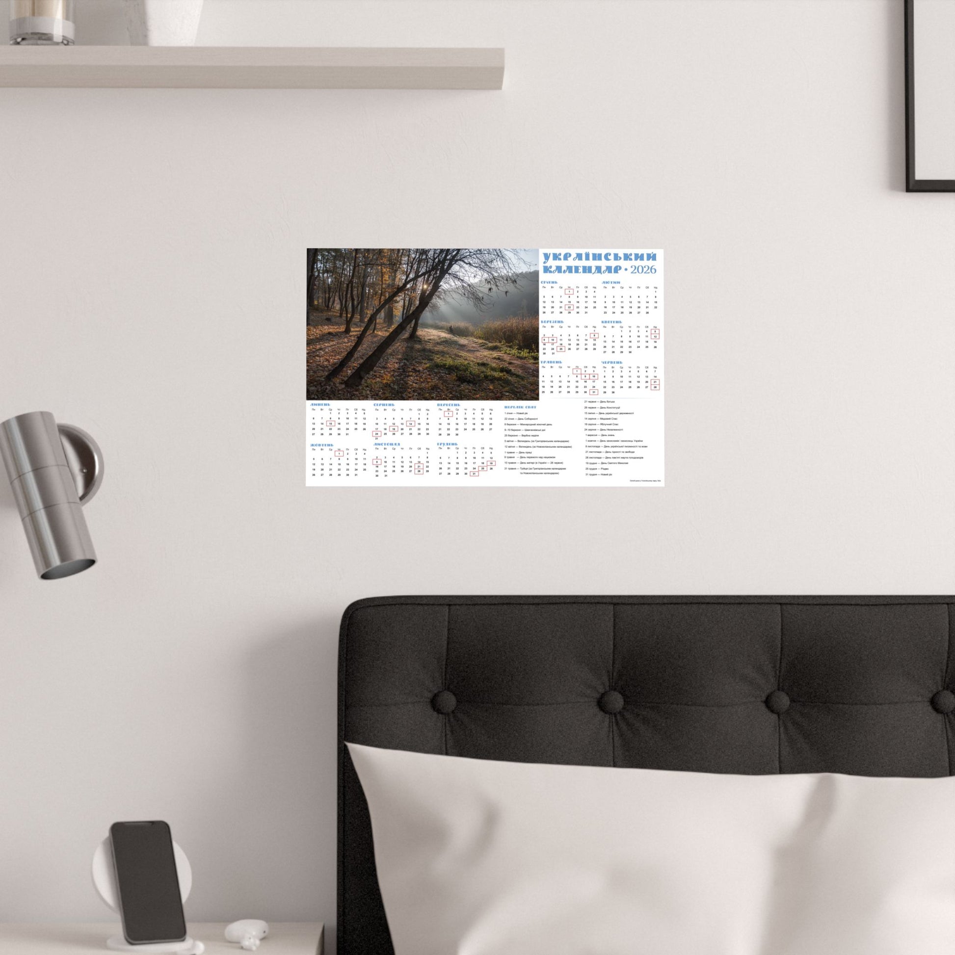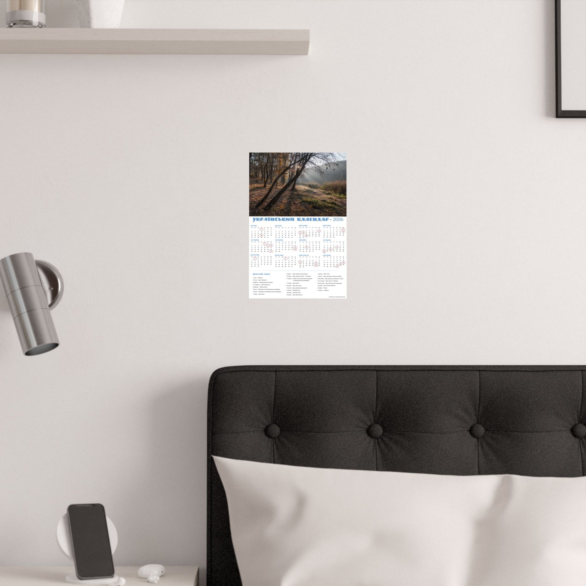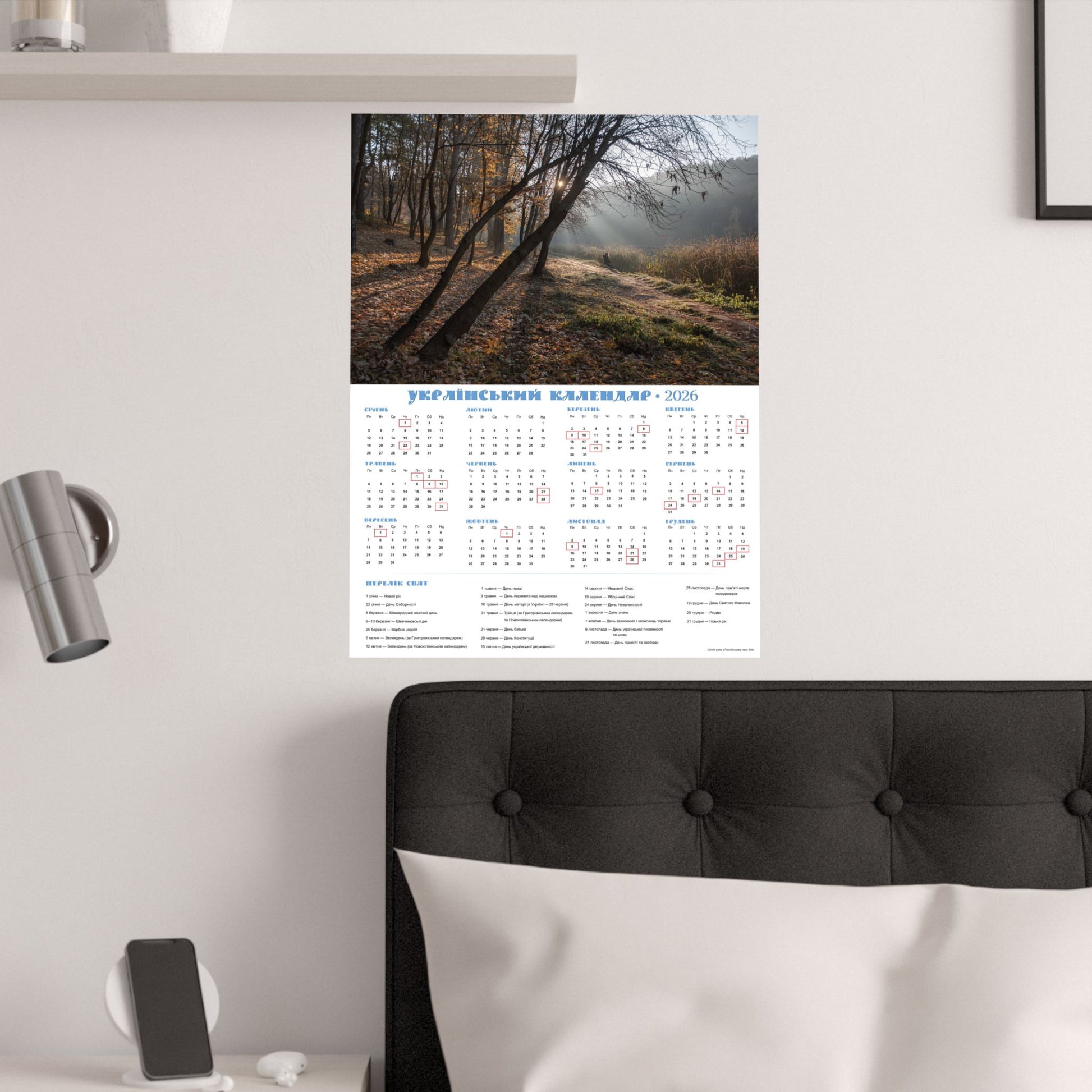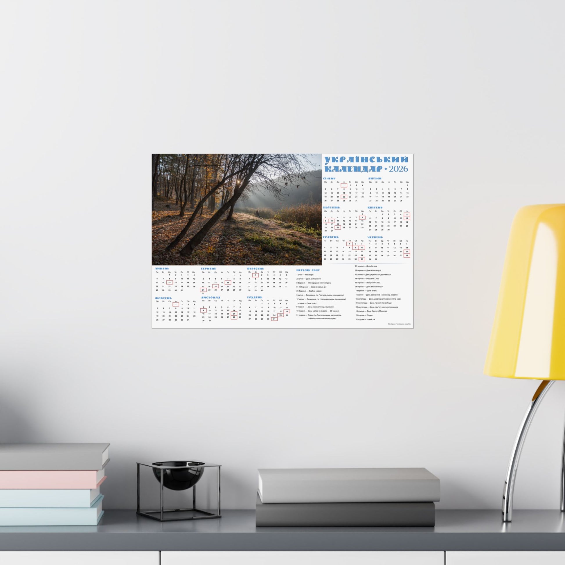 This satin poster brings a quiet, late-autumn moment into any indoor space. Printed on smooth, low-glare museum-grade paper, the image captures soft morning light filtering through trees and a dew-kissed meadow—an atmosphere of calm and gentle reflection. The calendar layout is integrated into the design, making this both a visual focal point and a functional wall piece for the year. Colors stay vivid thanks to pigment inks and modern printing methods, while the archival paper resists yellowing so the scene keeps its mood for years. Hang it framed or simple with tacks or double-sided tape to add a thoughtful, contemplative touch to an office, kitchen, or study.