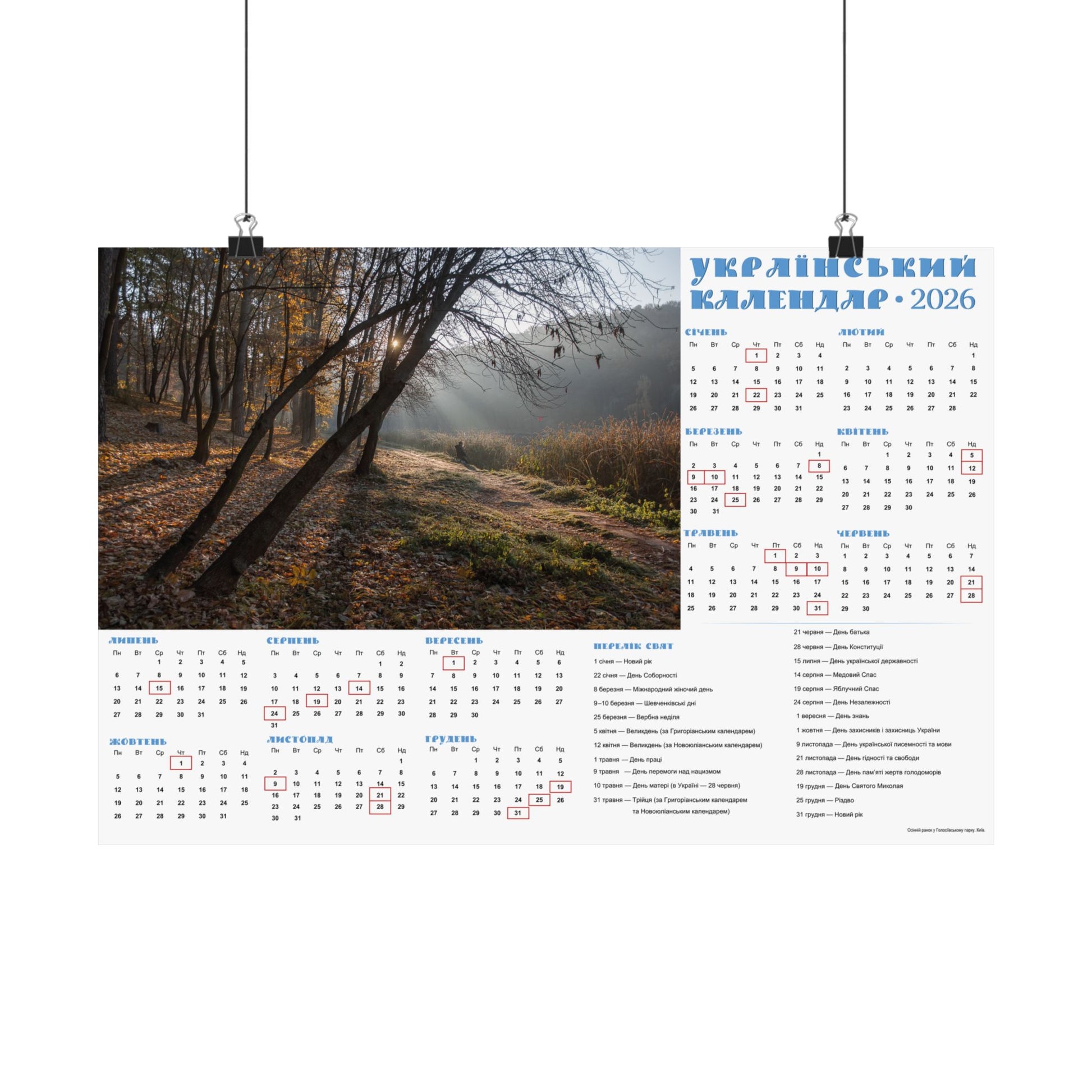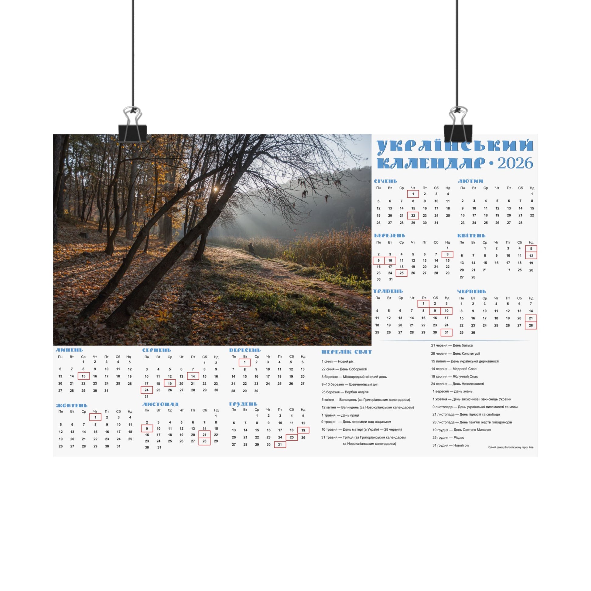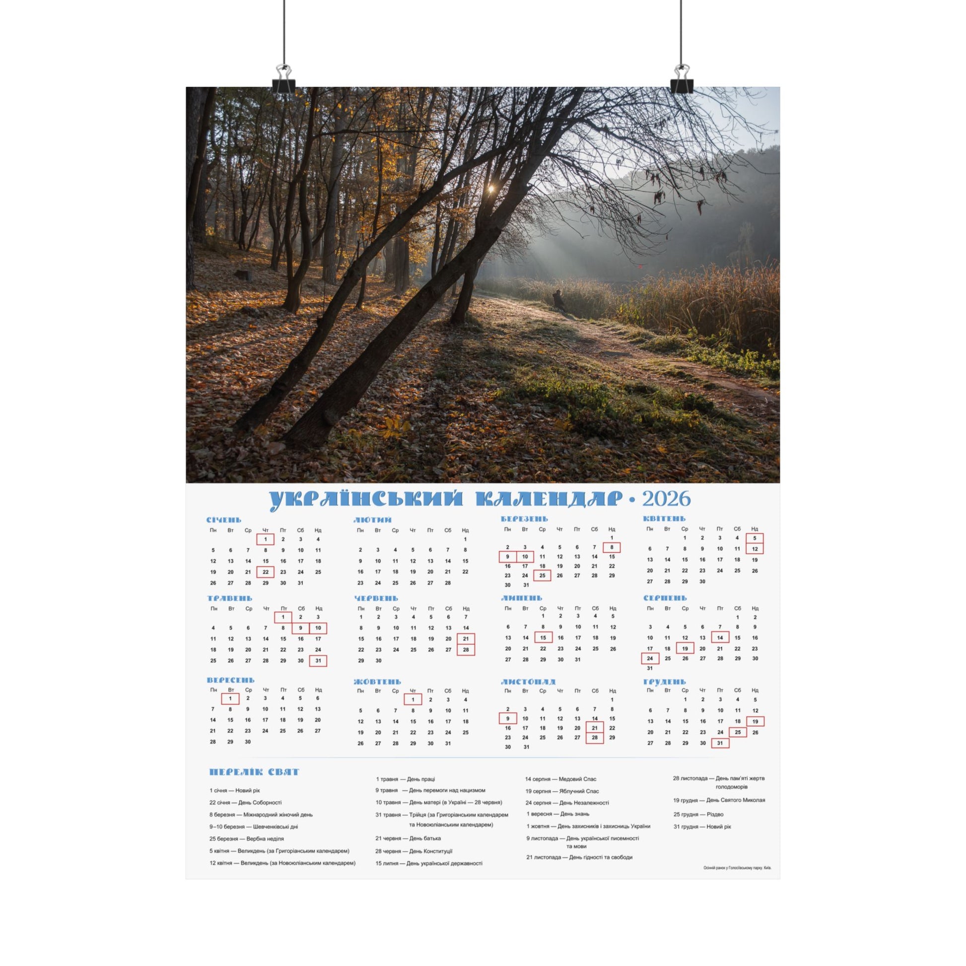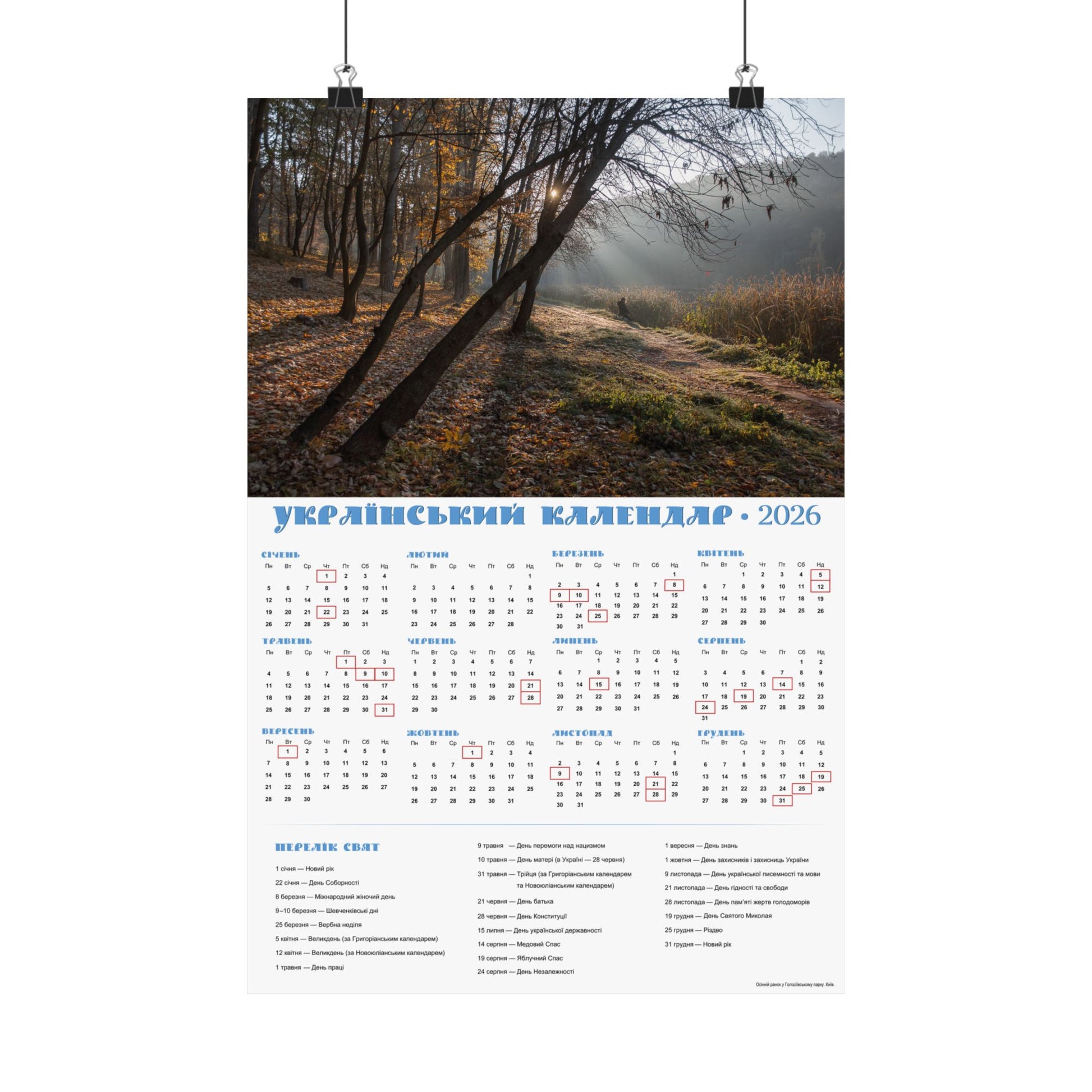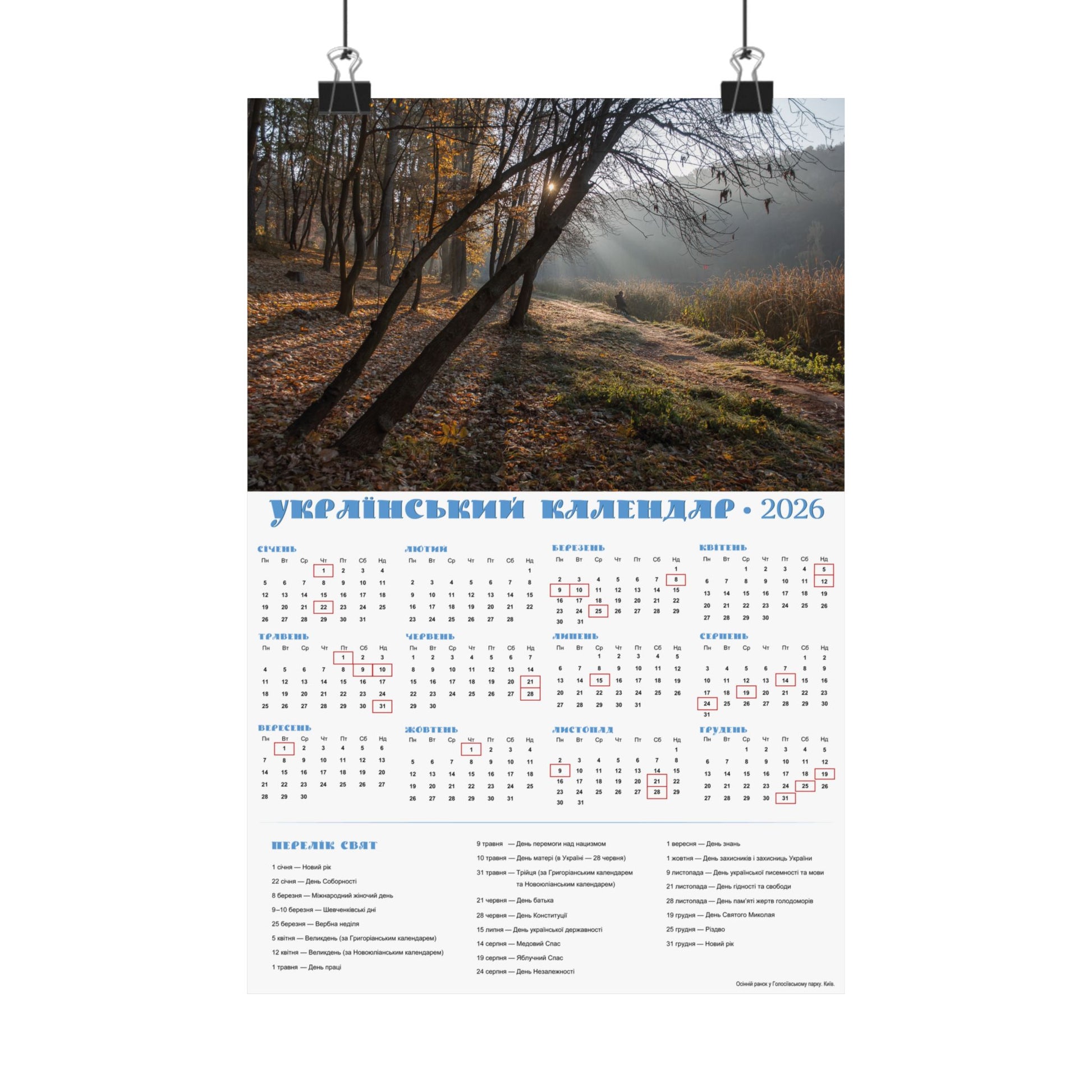 Autumn morning in Holosiivskyi Park in Kyiv | 2026 Ukrainian Calendar USA