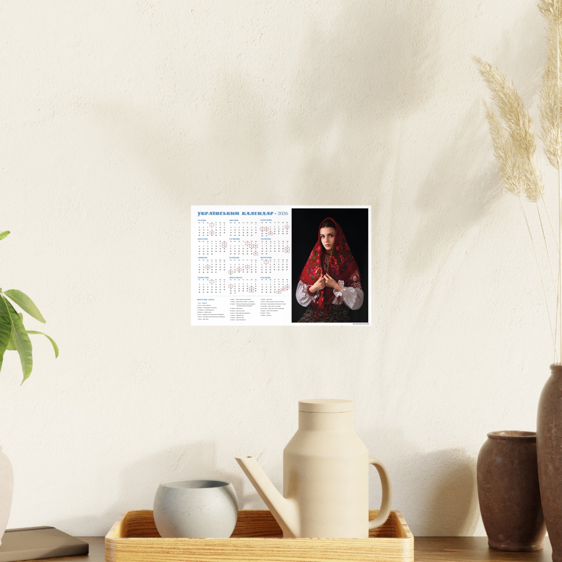 The one-page poster calendar "Classic portrait" belongs to the series 2026 Ukrainian Calendar CANADA, created exclusively for Ukrainians and friends of Ukraine in CANADA. The vocation of this series is to add Ukrainian coziness to your home, so poignantly native and thick with the scents of mint, wild thyme, lovage and other fragrancy; to become a window into the Ukrainian coziness, wherever you are.