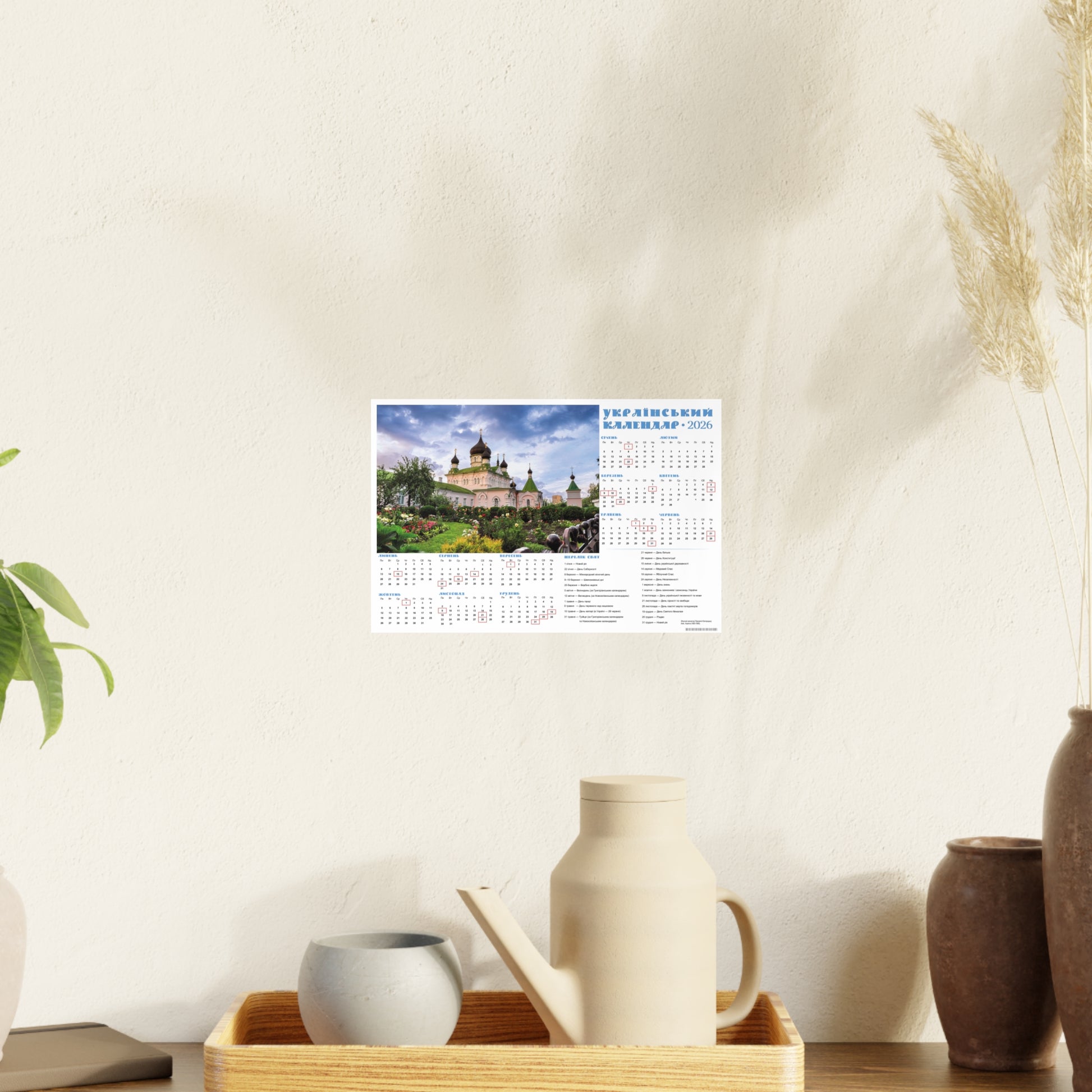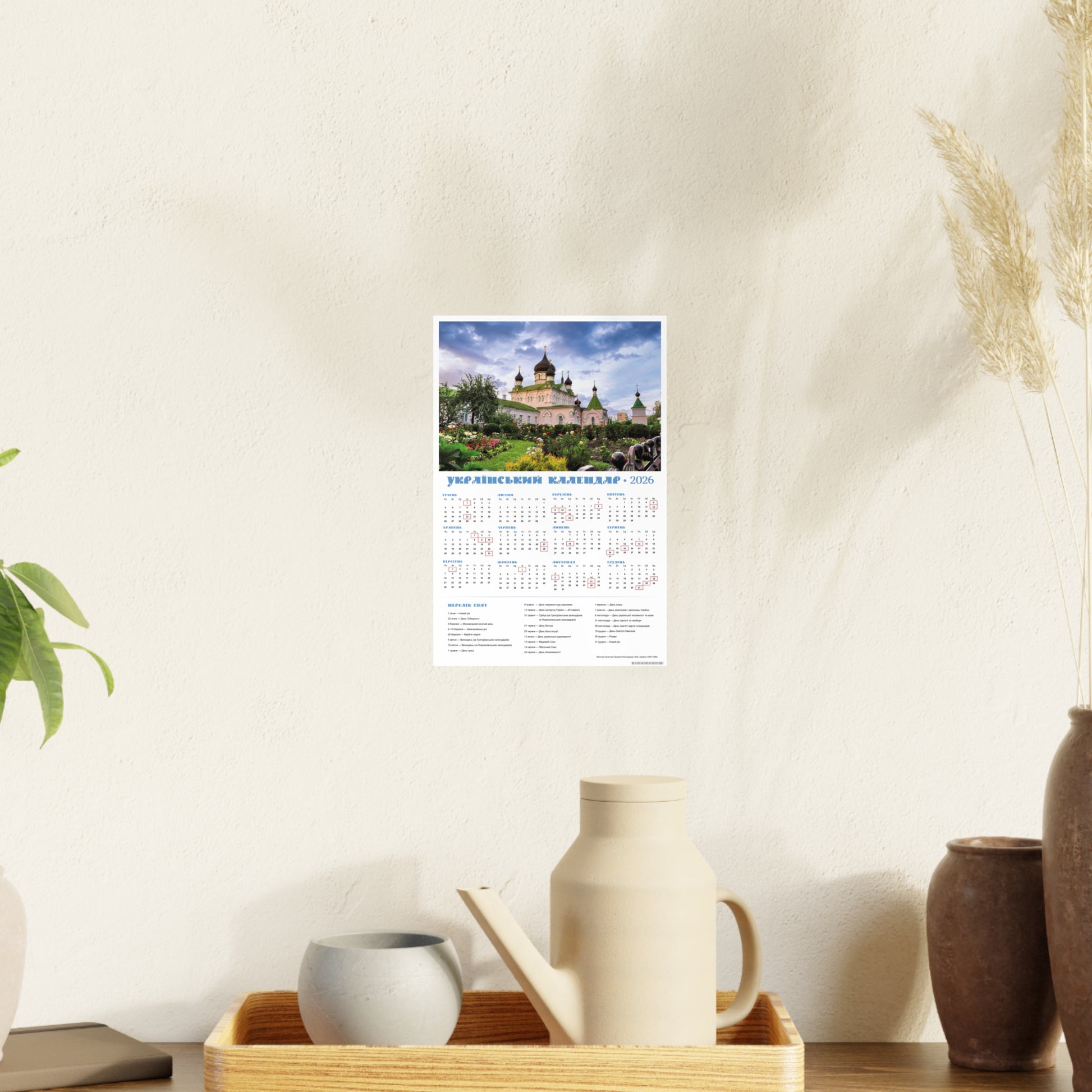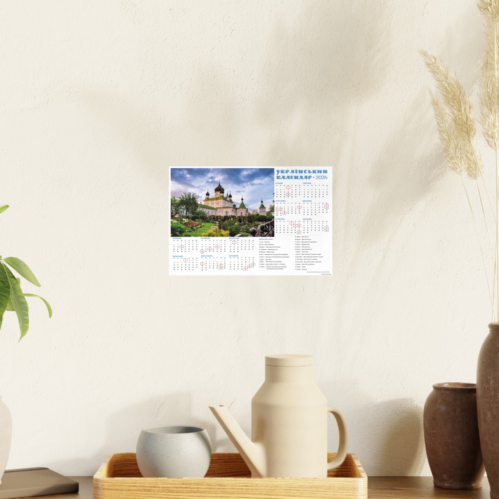 The one-page poster calendar "The female monastery of the Blessed Virgin in Kyiv" belongs to the series 2026 Ukrainian Calendar CANADA, created exclusively for Ukrainians and friends of Ukraine in CANADA. The vocation of this series is to add Ukrainian coziness to your home, so poignantly native and thick with the scents of mint, wild thyme, lovage and other fragrancy; to become a window into the Ukrainian coziness, wherever you are.