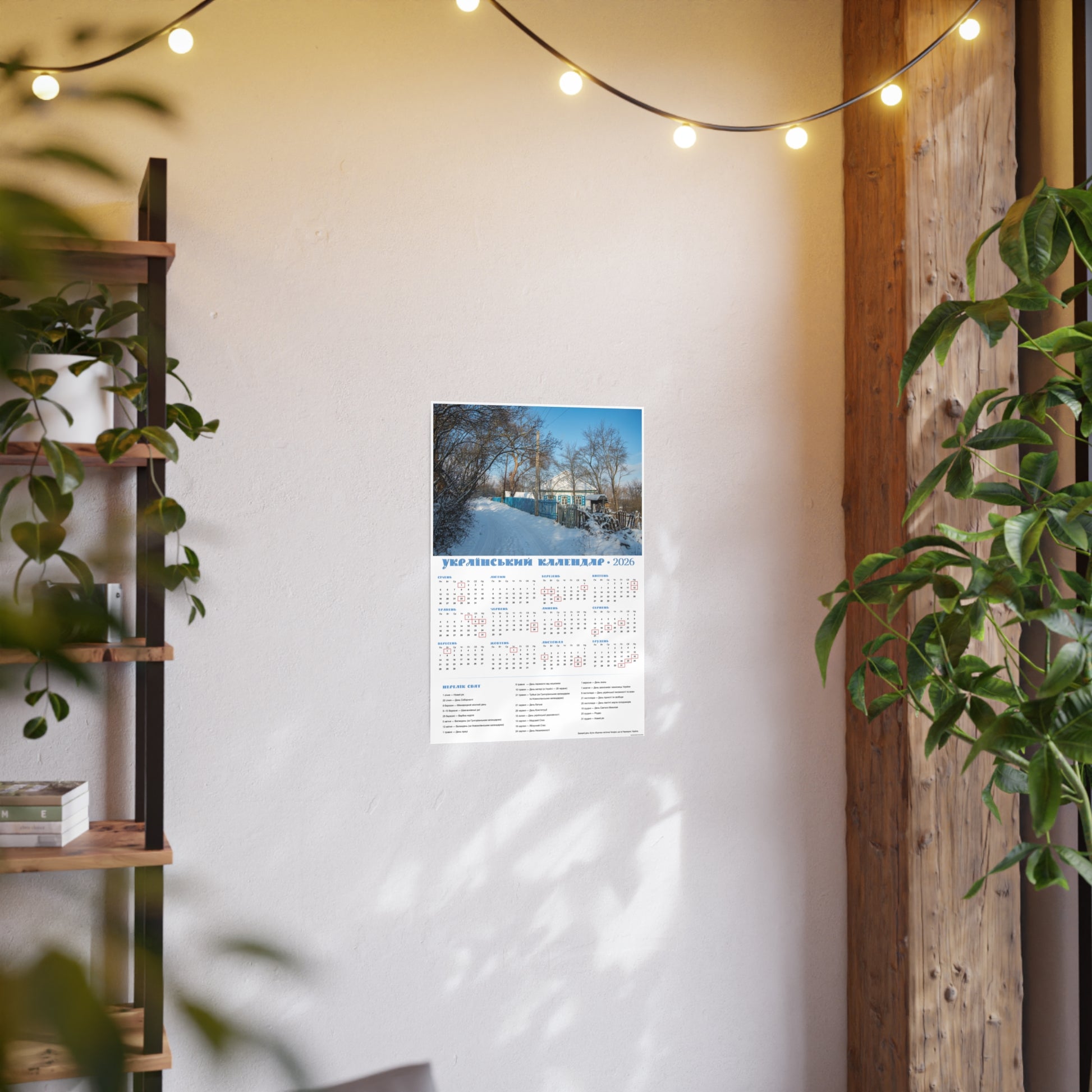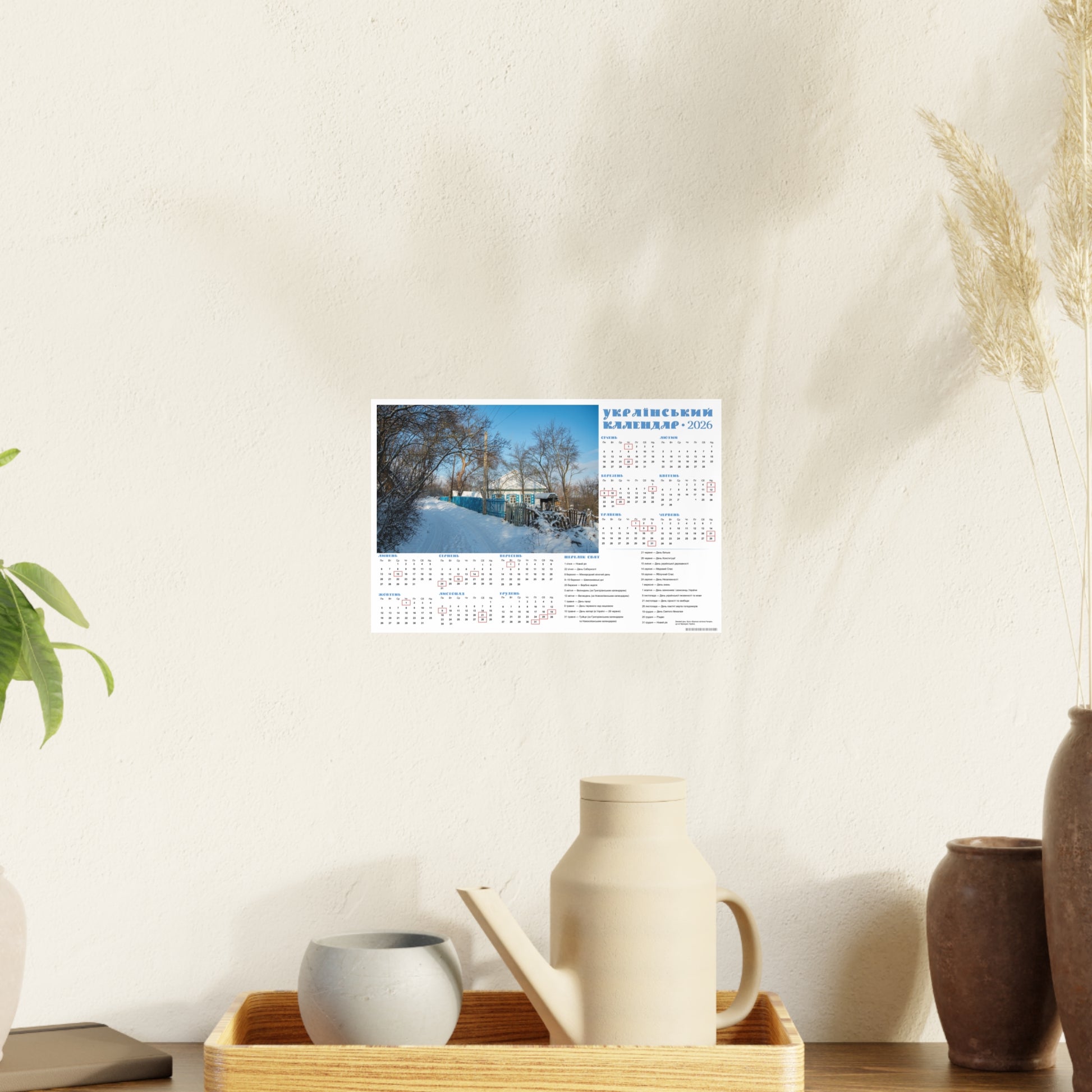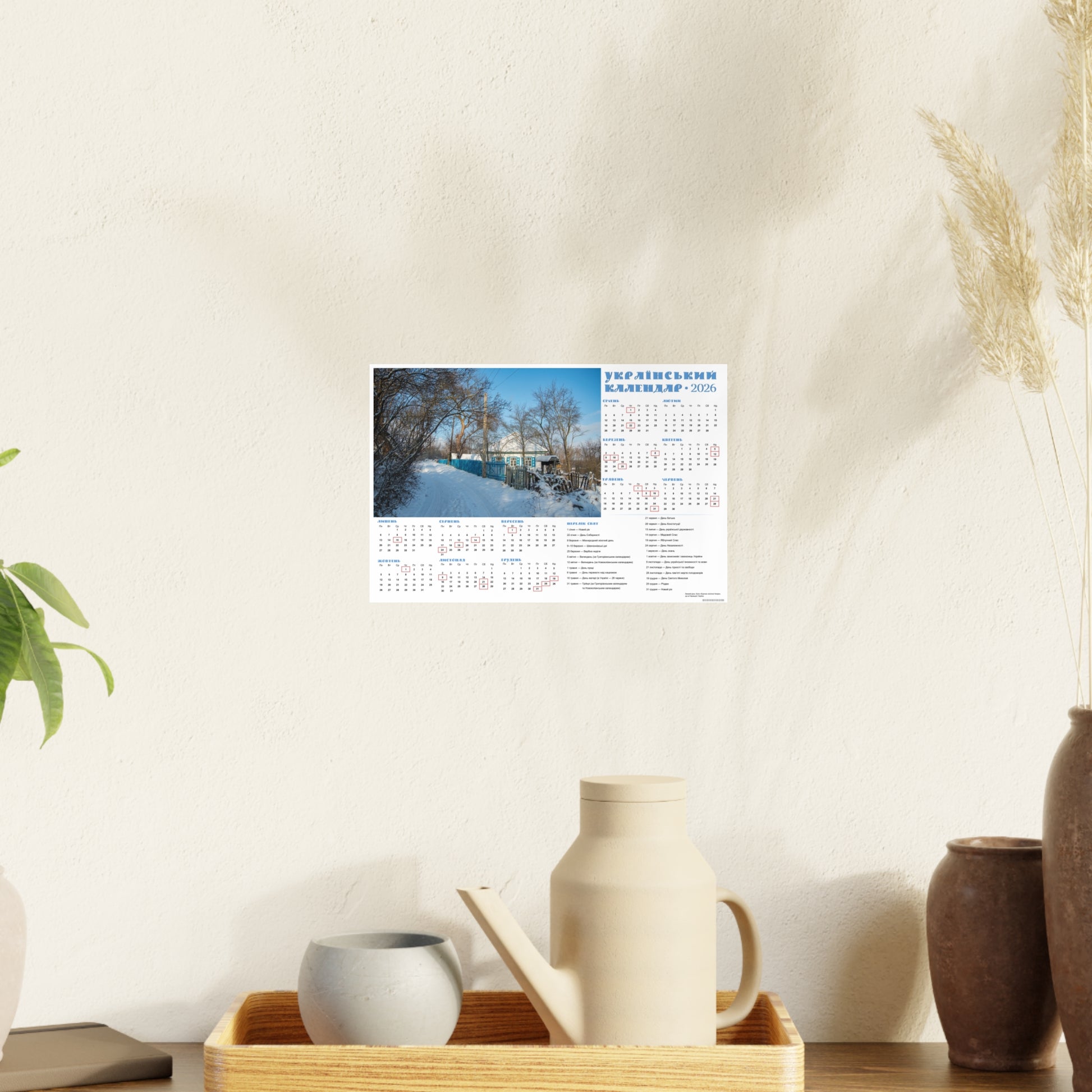 The one-page poster calendar "Winter day in Chyhyryn" belongs to the series 2026 Ukrainian Calendar CANADA, created exclusively for Ukrainians and friends of Ukraine in CANADA. The vocation of this series is to add Ukrainian coziness to your home, so poignantly native and thick with the scents of mint, wild thyme, lovage and other fragrancy; to become a window into the Ukrainian coziness, wherever you are.