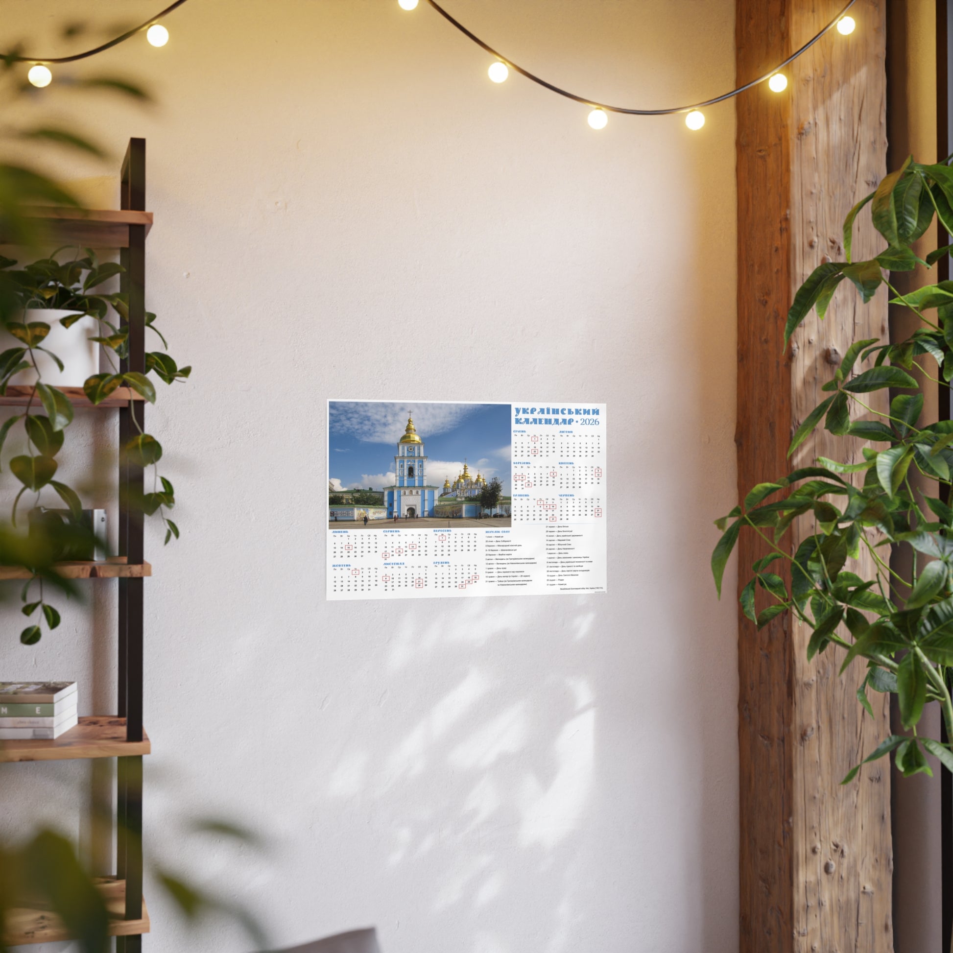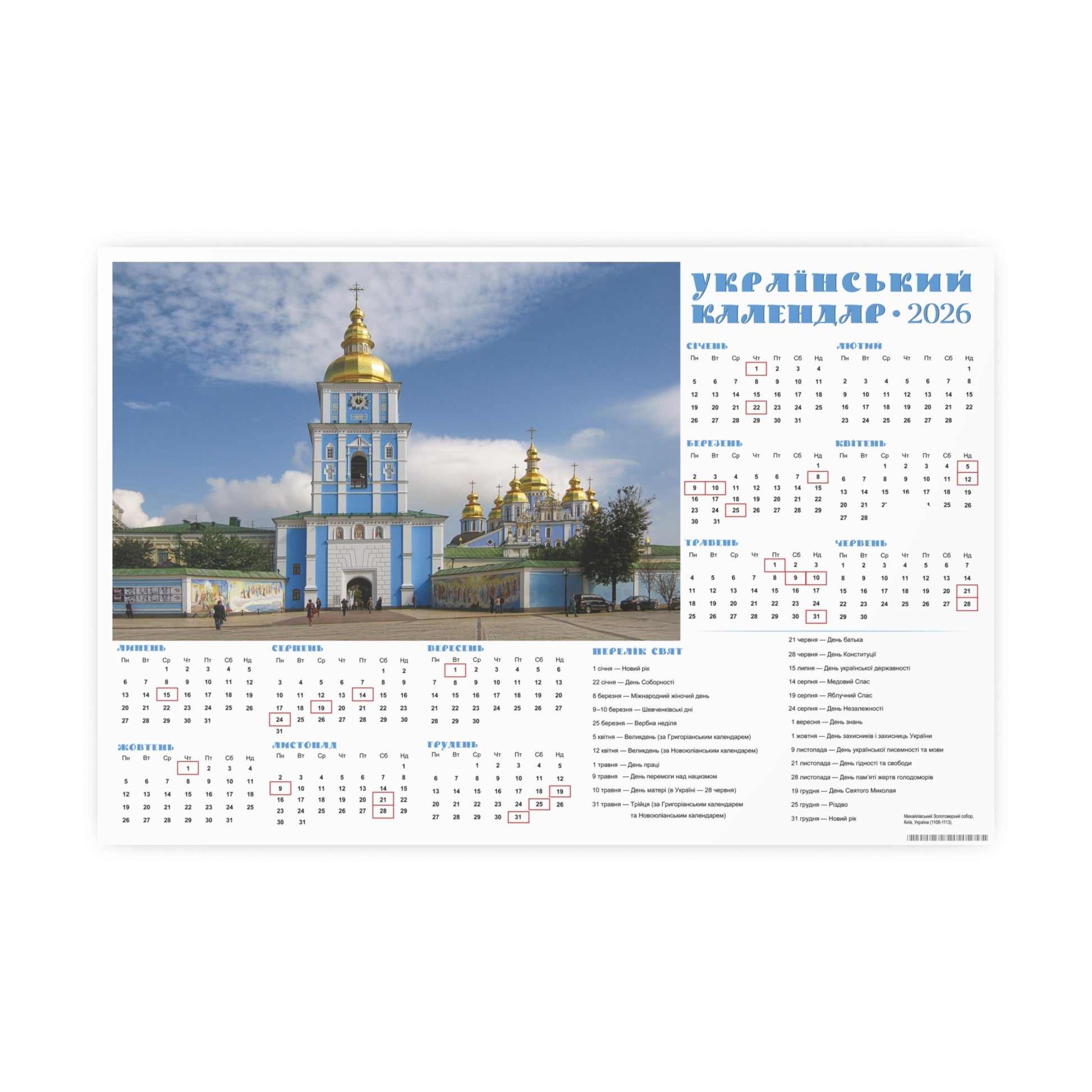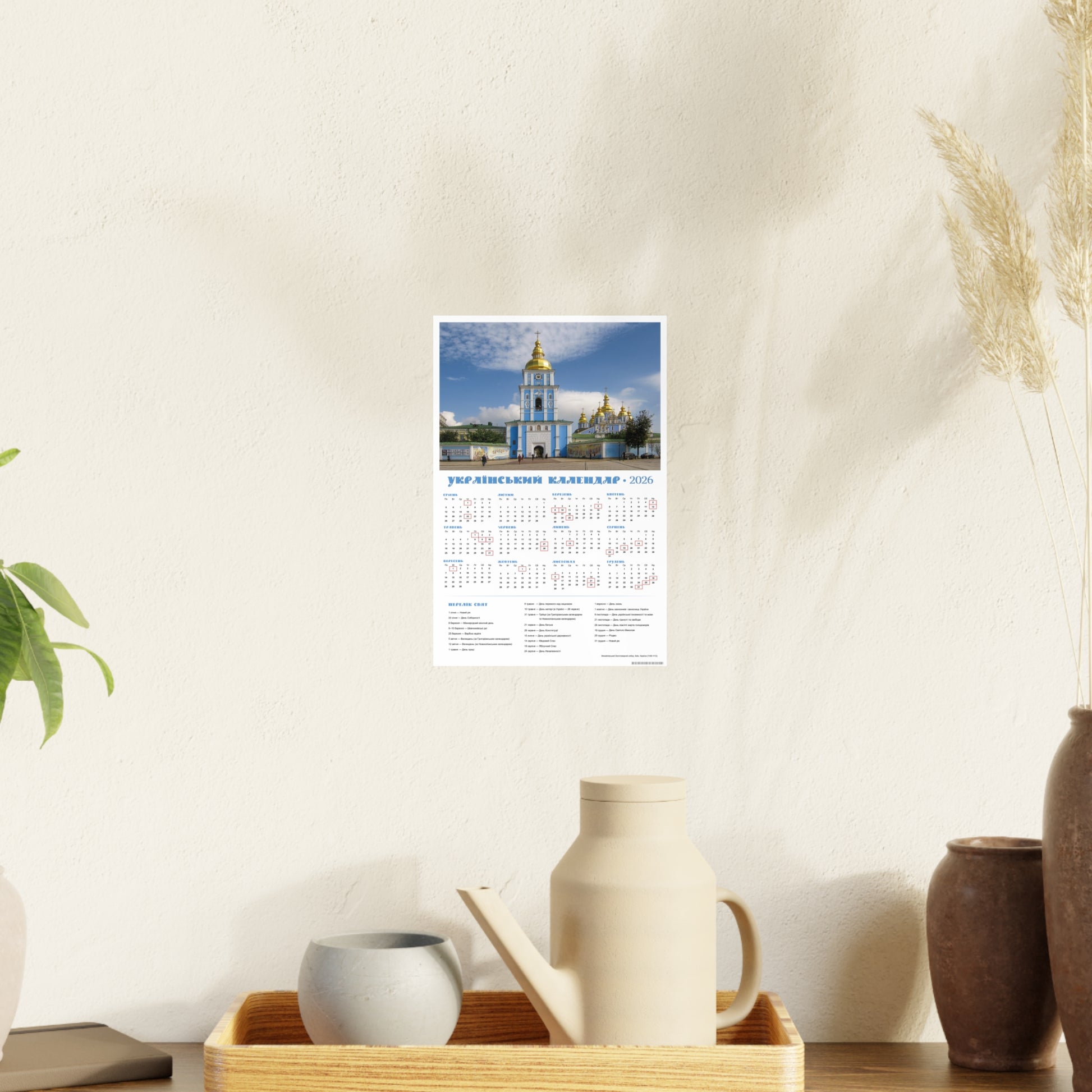 The one-page poster calendar "The St. Michael's Golden-Domed Cathedral in Kyiv" belongs to the series 2026 Ukrainian Calendar CANADA, created exclusively for Ukrainians and friends of Ukraine in CANADA. The vocation of this series is to add Ukrainian coziness to your home, so poignantly native and thick with the scents of mint, wild thyme, lovage and other fragrancy; to become a window into the Ukrainian coziness, wherever you are.