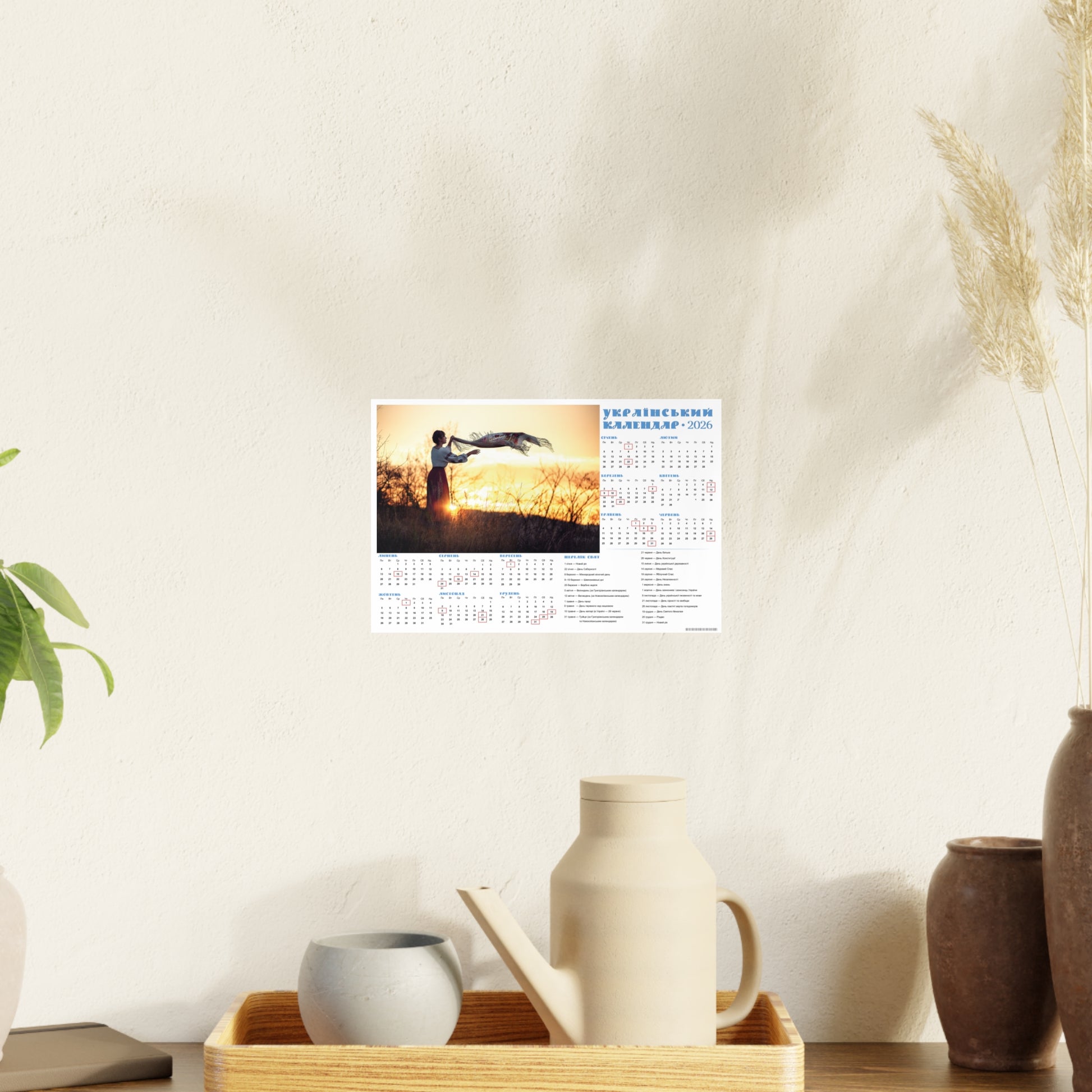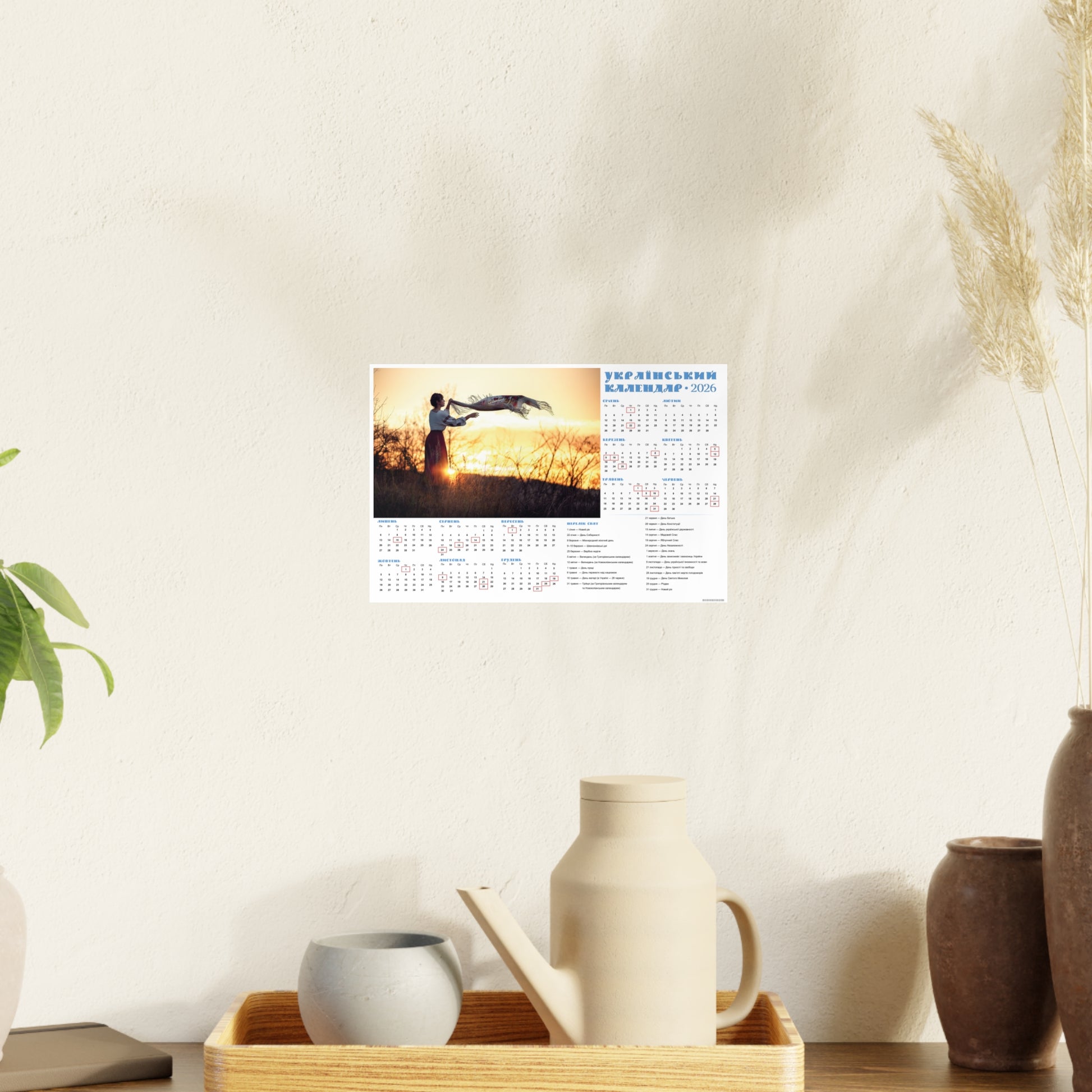 The one-page poster calendar "We will meet soon..." belongs to the series 2026 Ukrainian Calendar CANADA, created exclusively for Ukrainians and friends of Ukraine in CANADA. The vocation of this series is to add Ukrainian coziness to your home, so poignantly native and thick with the scents of mint, wild thyme, lovage and other fragrancy; to become a window into the Ukrainian coziness, wherever you are.