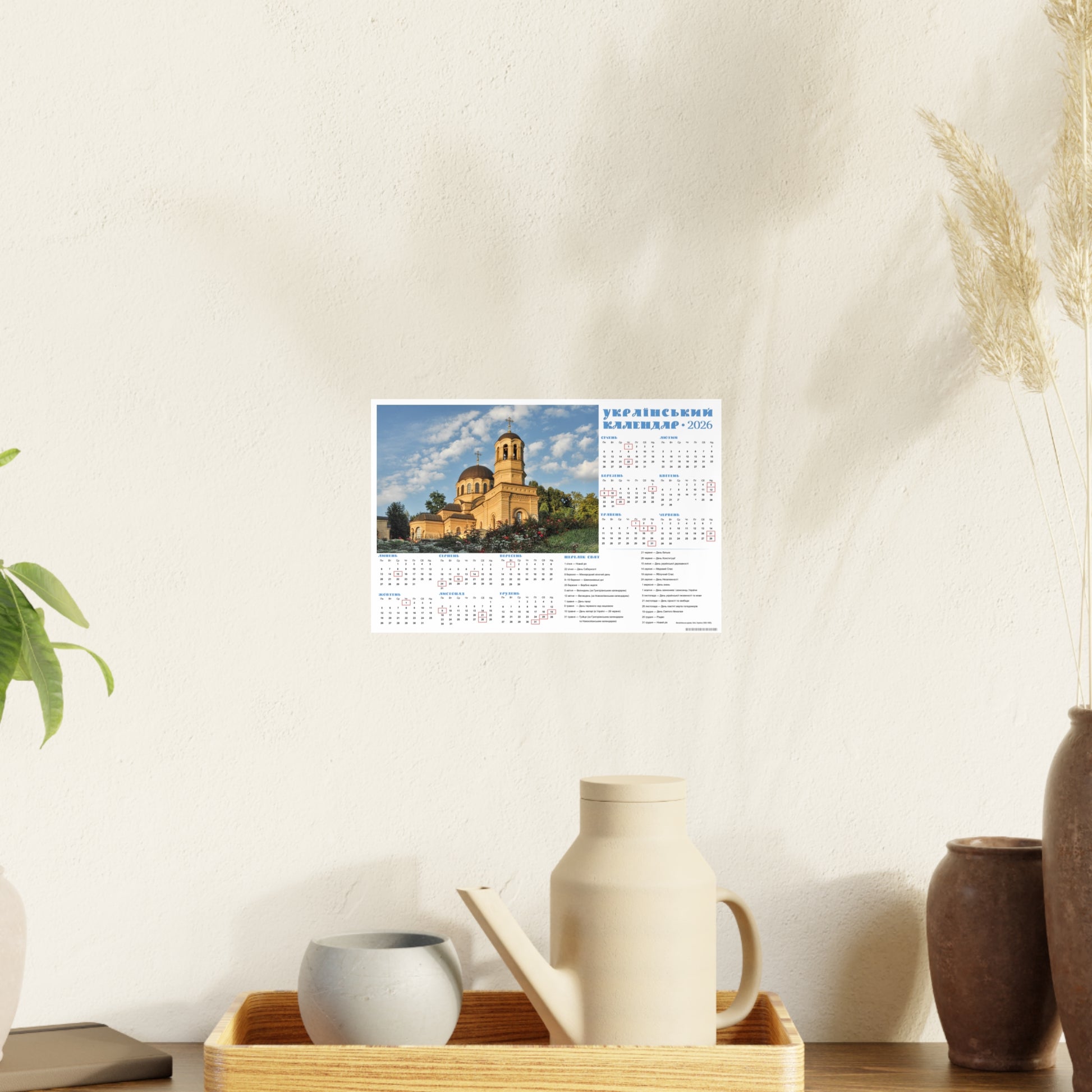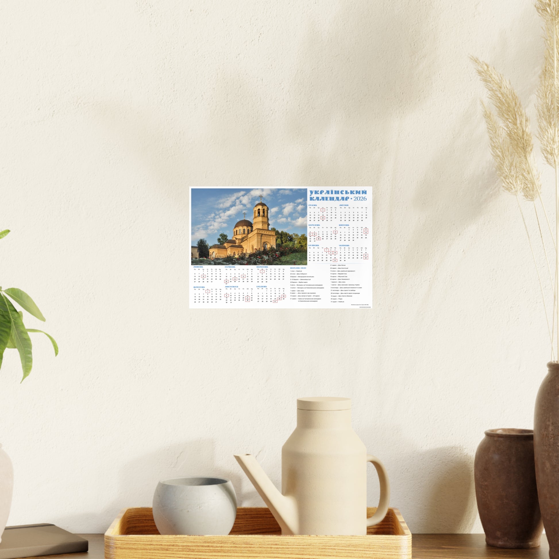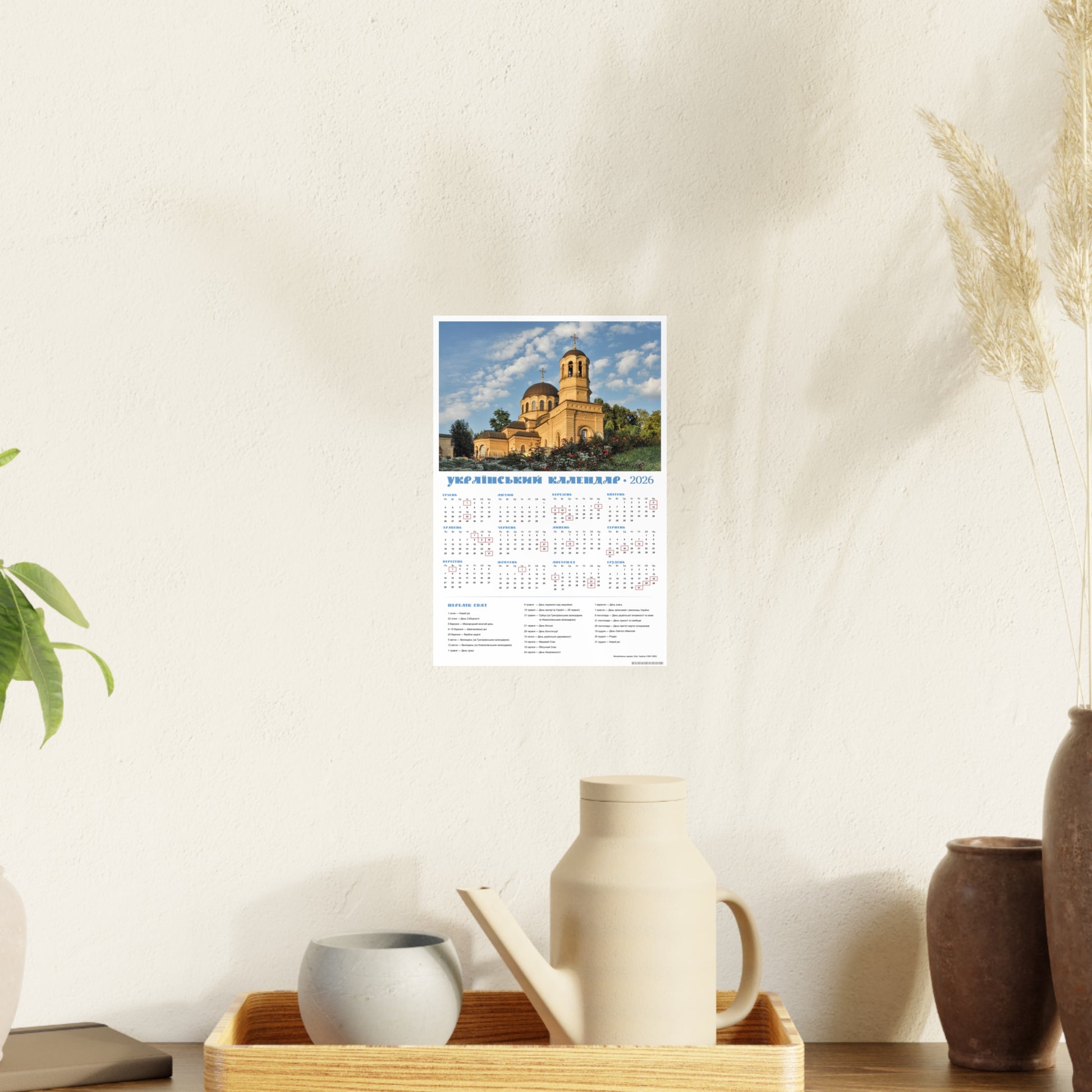 The one-page poster calendar "The St. Michael's Church in Kyiv" belongs to the series 2026 Ukrainian Calendar CANADA, created exclusively for Ukrainians and friends of Ukraine in CANADA. The vocation of this series is to add Ukrainian coziness to your home, so poignantly native and thick with the scents of mint, wild thyme, lovage and other fragrancy; to become a window into the Ukrainian coziness, wherever you are.