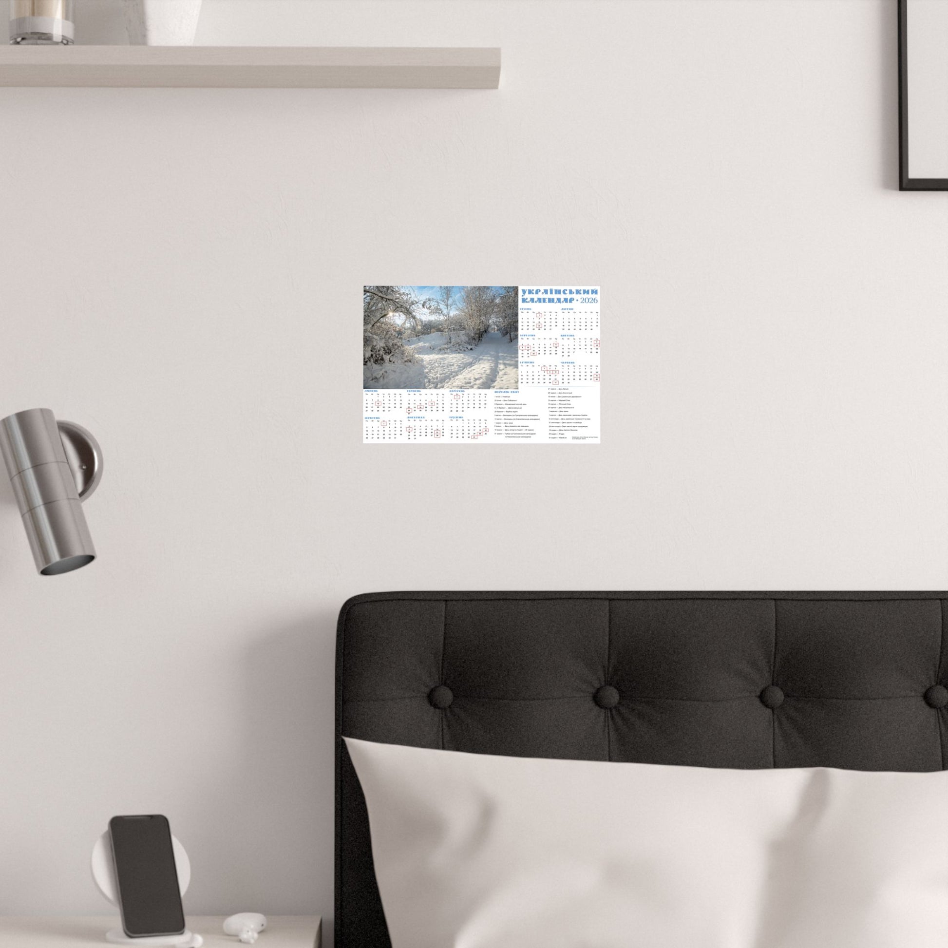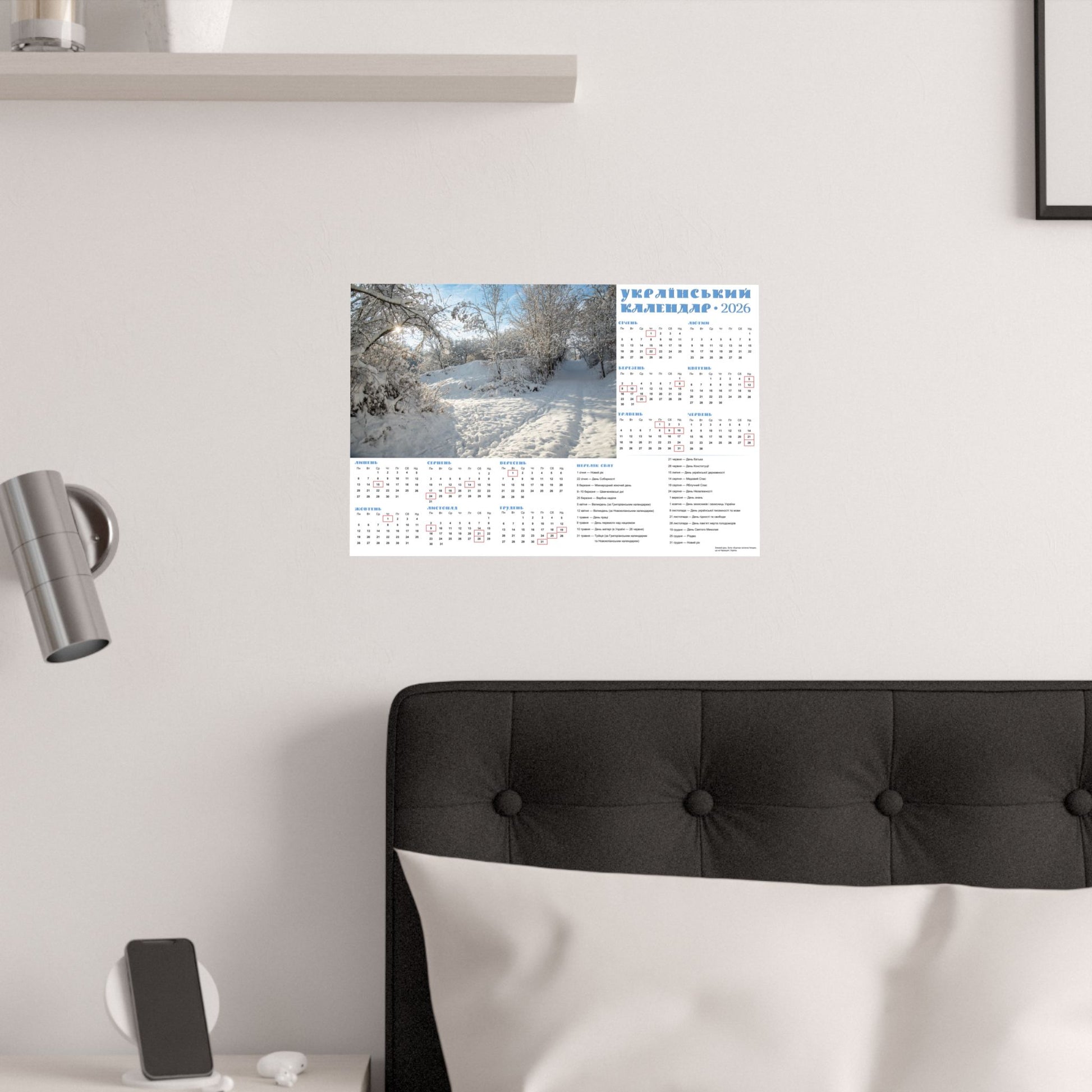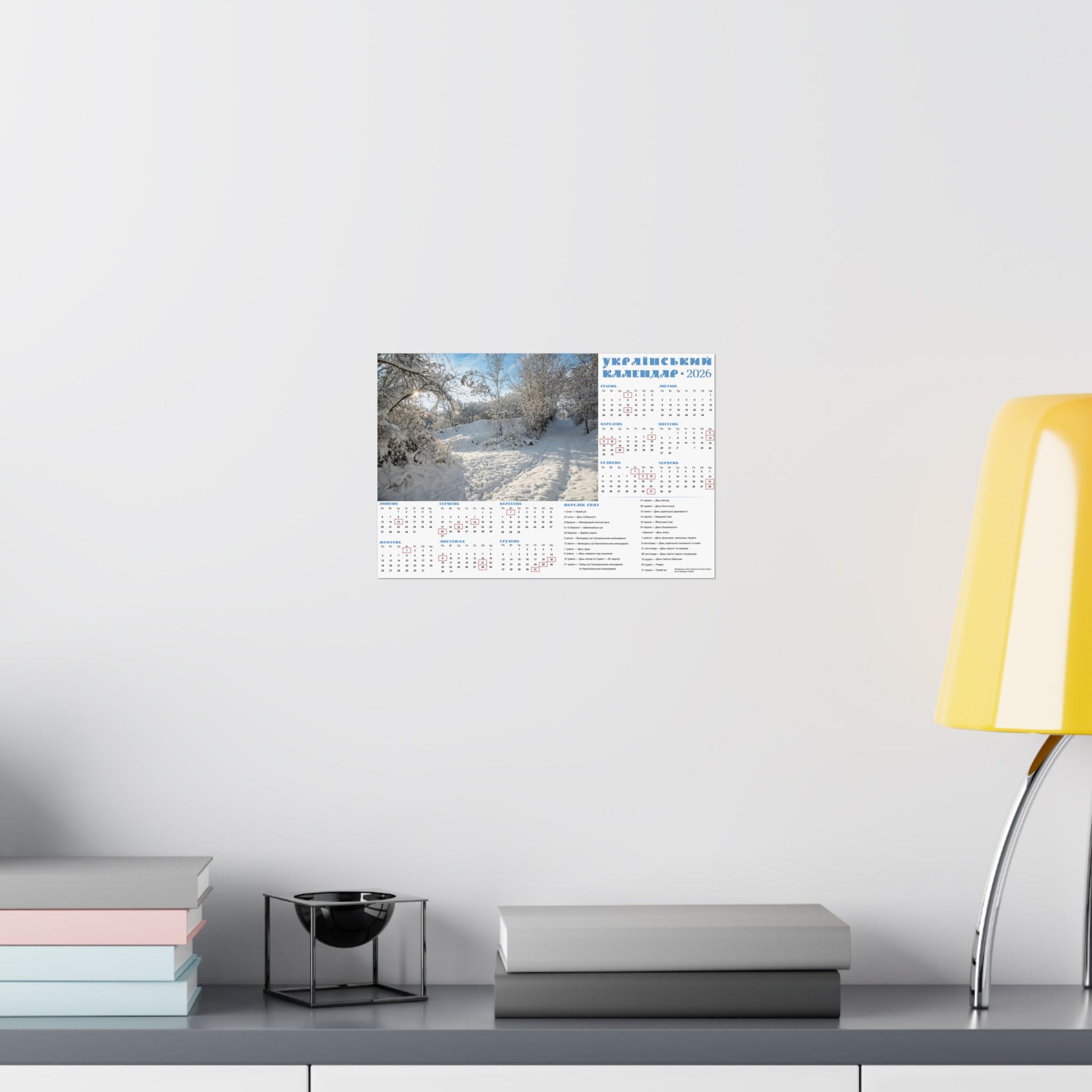 A crisp, low-glare satin poster printed on archival museum-grade paper that brings a calm winter scene and a practical 2026 calendar into any indoor space. The snowy landscape photo carries a quiet, reflective mood while the clearly laid-out calendar grid and holiday markings make planning effortless. Rich pigment inks keep the blues and whites vivid, and the range of sizes and orientations means you can choose a layout that fits a kitchen wall, home office, or hallway. Lightweight and easy to hang with tape, tacks, or a frame, this poster blends art and function for someone who values both beauty and everyday utility.